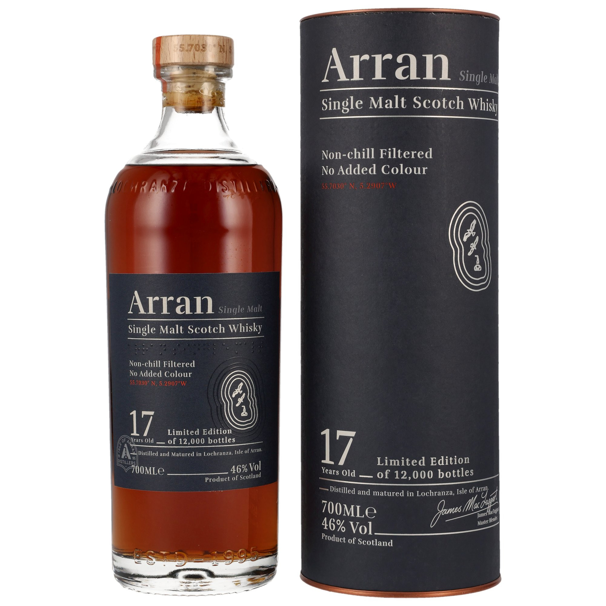 Sowohl in first-fill Bourbon-Casks als auch in first- und second fill Sherry-Fässern reifte dieser Arran Malt 17 Jahre lang heran. Im Geschmack findet man Mandeln, cremige Vanille, Butterscotch und geröstete Eiche. Abgefüllt 2023 und limitiert auf 12.000 Flaschen.