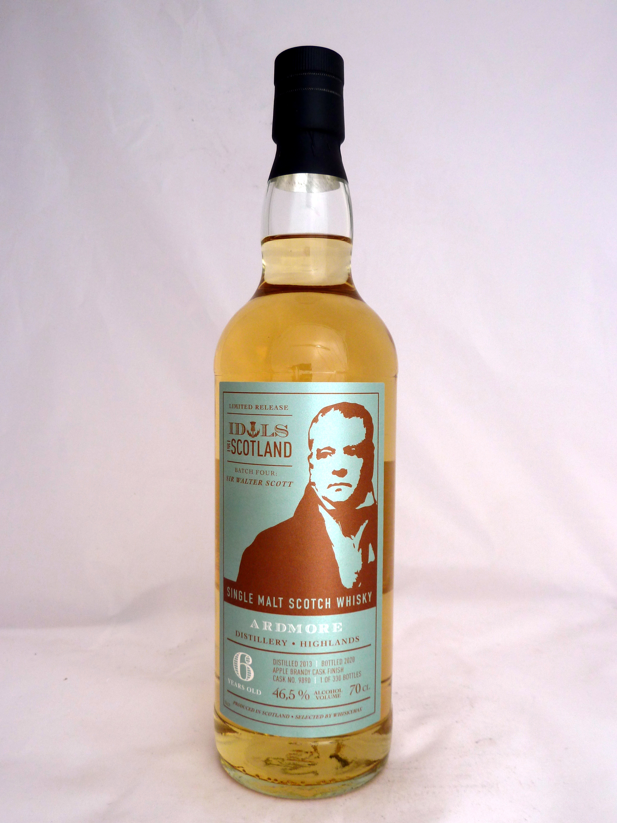 Dieser Ardmore wurde in der Idols of Scotland Reihe des deutschen Importeurs Whiskymax erhielt ein Finish in einem ehemaligen Apple Brandy Cask, bevor er 2020 mit 46,5% vol. abgefüllt wurde. Diese auf nur 330 Flaschen limitierte Abfüllung ist "Sir Walter Scott" gewidmet.